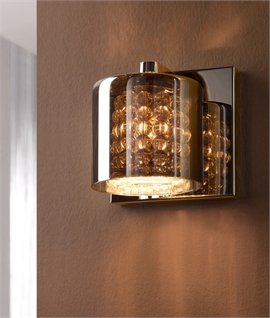 Smoked Glass Wall Light with Crystals & Chrome Back Plate
