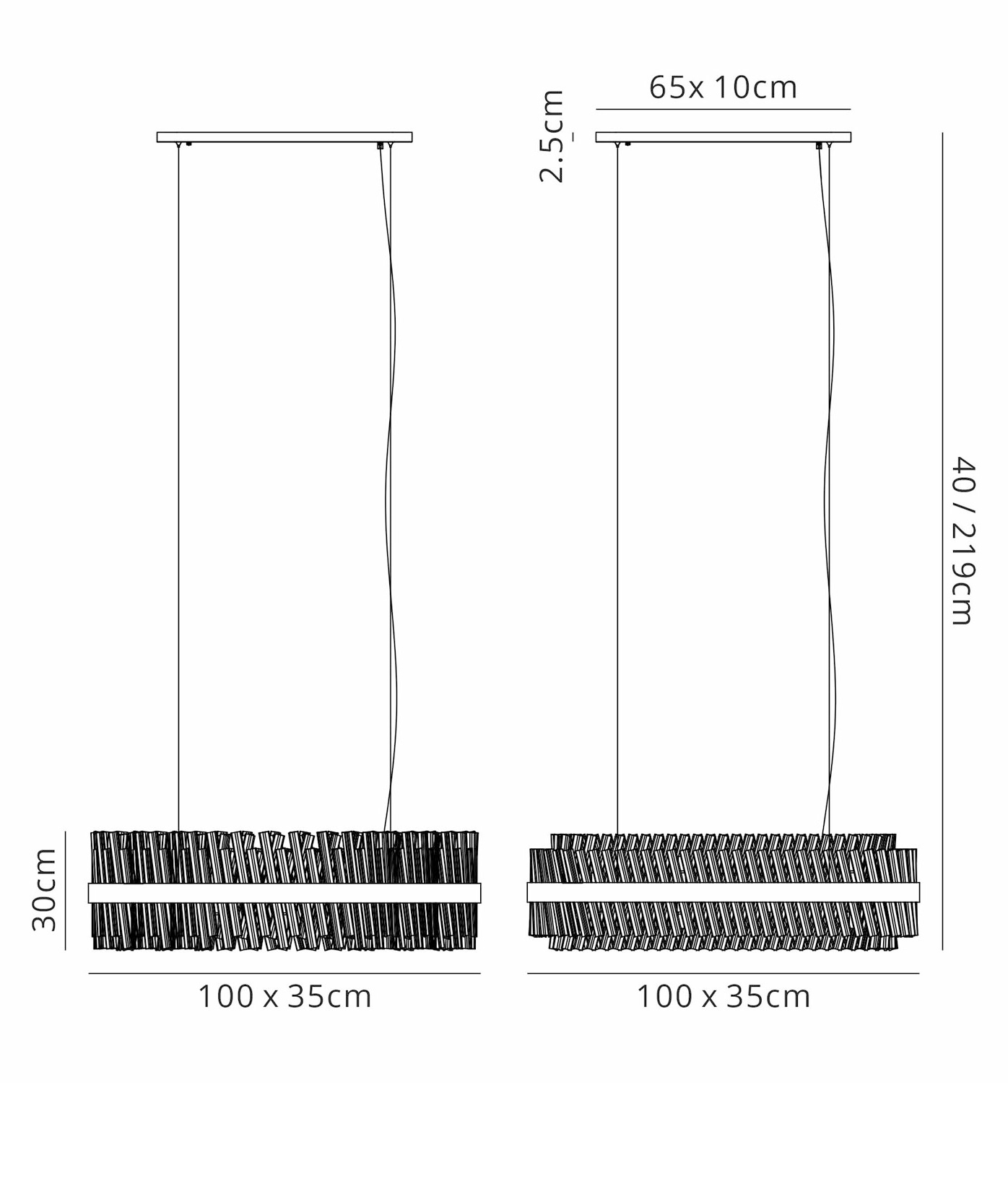 The 1.5 metre light is adjustable at the time of installation to suit your space. The maximum overall height of 2690mm can be reduced to a minimum drop of 400mm.