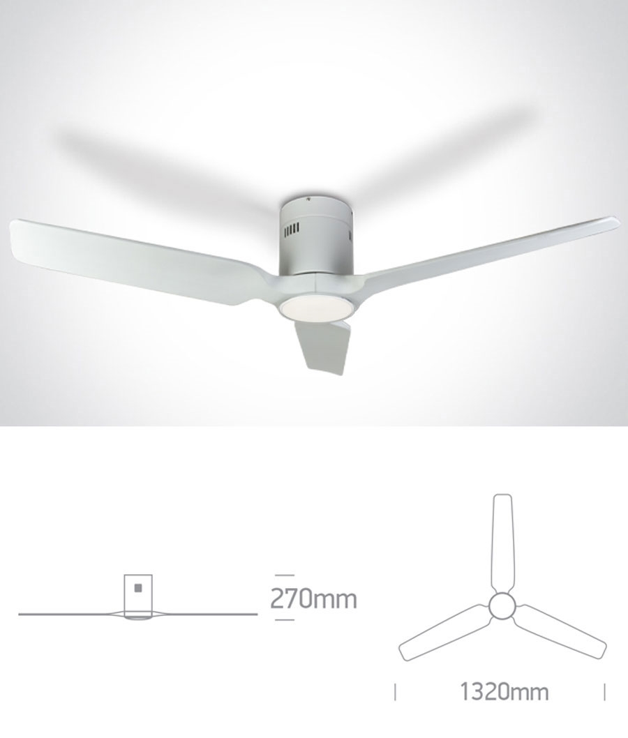 Low Profile Ceiling Fan - Flush Fit, CCT Adjustable with Flat Wooden Paddle-Style Blades -132cm