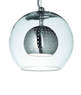 Spanish Design Single Clear Glass Globe & Matt Nickel Pendant 20cm